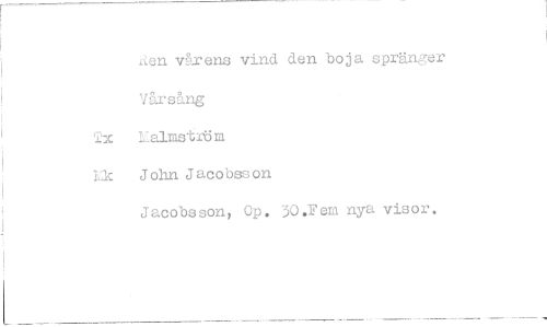 //// ien vårens vind den boja spräner Vårsång //// Lelmst-Itm //// 311,:: John Jacobsson //// Jacobsson, Op. 30.Fem nya visor. ////