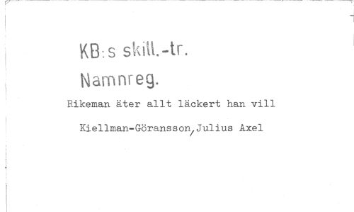 //// KB:s skitt.-tr. //// Namnreg. //// Rikeman äter allt läckert han vill Kiellman-Göransson Julius Axel //// r7, ////