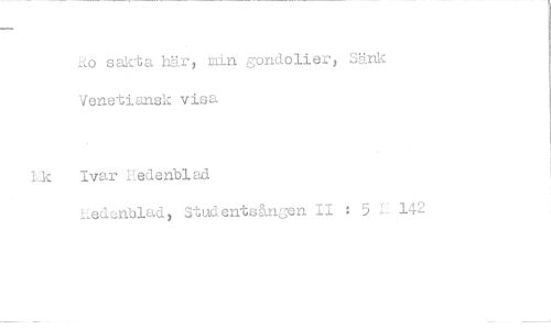 //// Ro sakta här, min gondolier, Sänk Venetiansk visa //// i:k Ivar Hedenblad //// .(3dsn'olad, Studentsåncen II : 5 L 142 ////