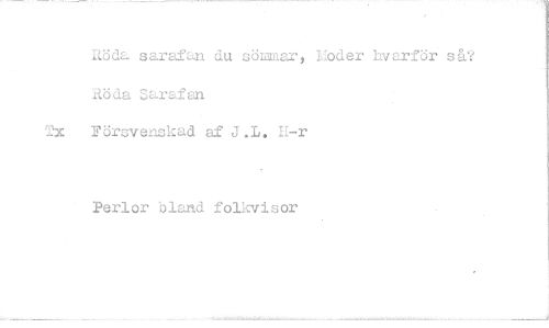 //// Röda sarafan du sömmar, Moder hvarför så? //// Röda Sarafan //// Tx Försvenskad af 11-r //// Perlor bland folkvisor ////