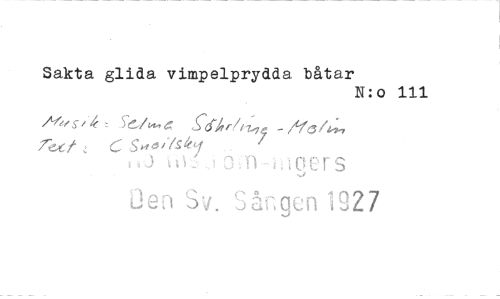 //// Sakta glida vimpelprydda båtar //// N:o 111 //// k //// C (5 //// S+44517 //// 61,-) tIV: 13J) 12 r s //// Den Sv. Sår,gen 1927 ////