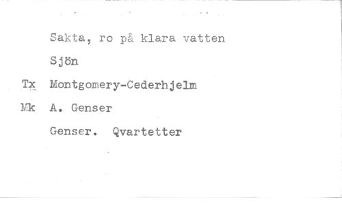 //// Sakta, ro på klara vatten //// Sjön //// Tx Montgomery-Cederhjelm //// fik A. Genser //// Genser. Qvartetter ////