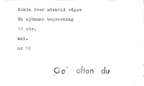 //// Sakta över mörkblå vågor //// En sjönians begravning //// 10 str. //// mel. //// nr 12 //// afton du ////