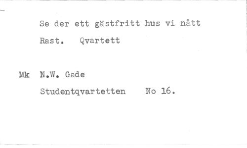 //// Se der ett gästfritt hus vi nått //// Rast. Qvartett //// Mk N.W. Gade //// Studentqvartetten No 16. ////