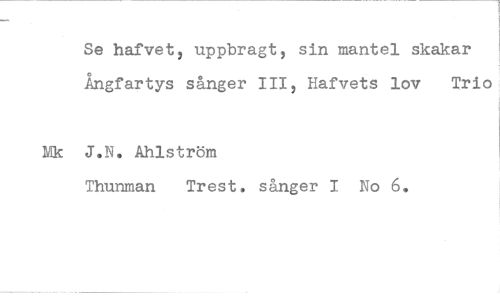//// Se hafvet2 uppbragt, sin mantel skakar //// 9 //// Angfartys sånger 1112 Hafvets lov Trio //// Mk J.N. Åhlström //// Thunman Trest. sånger 1 No 6. ////