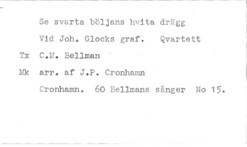 //// Se svarta böljans hvita drägg //// Vid Joh. Glocks graf'. Qvartett //// Tx C.M. Bellman //// Mk arr. af J.P. Cronhamn //// Cronhamn. 60 Bellmans sånger No 15. ////