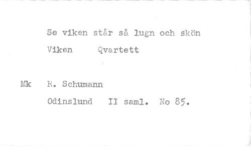 //// Se viken står så, lugn och skön //// Viken Qvartett //// Mk R. Schumann //// Odinslund II saml. No 85. ////