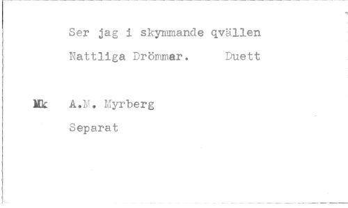 //// Ser jag i skymmande qvällen Nattliga Drömmar. Duett //// A.M. Myrberg Separat