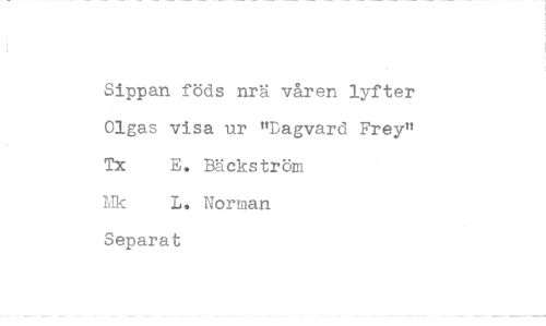 //// Sippan föds nrä våren lyfter Olgas visa ur "Dagvard Frey" Tx E. Bäckström Mk L. Norman Separat