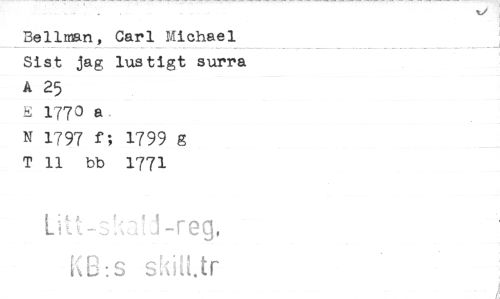 //// Bellman, Carl Michael Sist jag lustigt surra A 25 //// K I77O a //// N 1797 f; 1799 g T 11 bb 1771 //// i //// 1 //// ___i