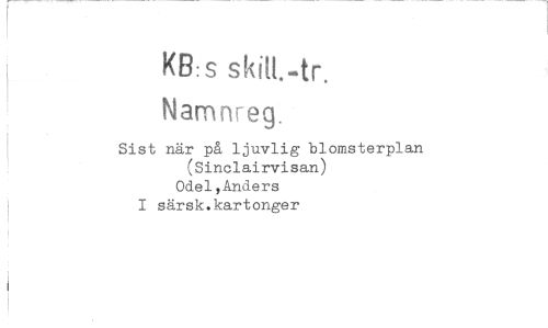 //// KB:s skiH.-tr. Namnreg. //// Sist när på ljuvlig blomsterplan (Sinclairvisan) //// Odel,Anders //// I särsk.kartonger