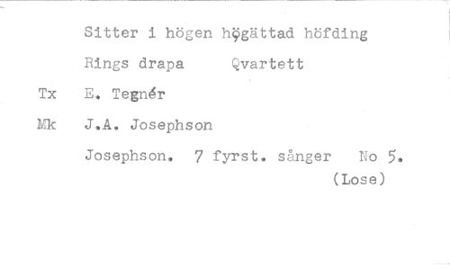 //// Sitter i högen högättad höfding //// Rings drapa Qvartett //// Tx E. Tegnér //// Mk J.A. Josephson //// Josephson. 7 fyrst. sånger No 5< //// (Lose)