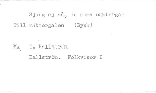 //// Till //// Mk //// Sjung ej så, du ömma näkterga näktergalen (Rysk) //// I. Hallström Hallström. Folkvisor I //// t-j