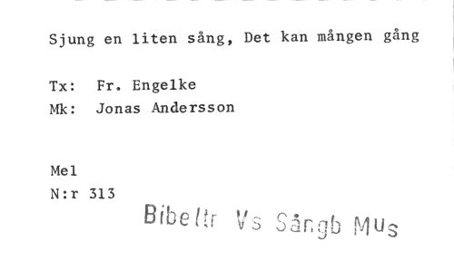 //// Sjung en liten sång, Det kan mången gång //// Tx: Fr. Engelke Mk: Jonas Andersson //// Mel //// N:r 313