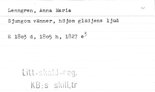 //// Lenngren, Anna Maria //// Sjungom vänner, höjom glädjens ljud //// E 1803 d, 1805 h, 1827 //// Litt-s' a! g, HEhs sMUr