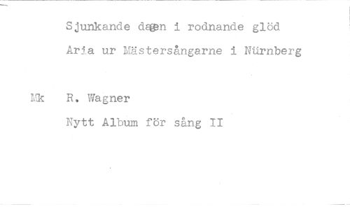 //// Sjunkande dg&n i rodnande glöd Aria ur Mästersångarne i Nurnberg //// R. Wagner //// Nytt Album för sång II