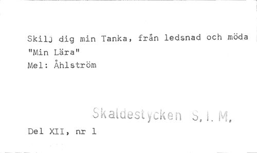 //// Skilj dig min Tanka, från ledsnad och möda "Min Lära" //// Mel: Åhlström //// b, i.M, //// Del XII, nr 1