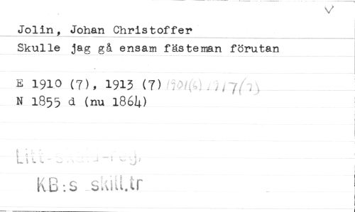//// Jolin, Johan Christoffer //// Skulle jag gå ensam fästeman förutan //// E 1910 (7), 1913 (7) //// N 1855 d (nu 1864)