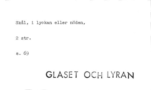 //// Skål, i lyckan eller nöden, //// 2 str. //// s. 69 //// GLASET OCH LYRAN
