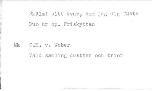 //// Skälm! sitt qvar, som jag dig fäste Duo ur op. Friskytten //// C.M. v. Weber //// Vald samling duetter och trior