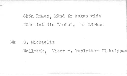 //// Skön Romeo, känd är sagan vida //// "Das ist die Liebe", ur Lärkan j //// G. Michaelis //// Wallmark, Visor o. kupletter II knippan