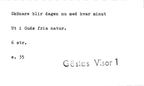 //// Skönare blir dagen nu med hvar minut Ut i Guds fria natur. //// 6 str. //// s. 35