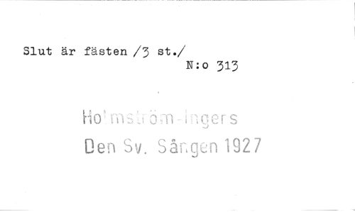 //// Slut är fästen /3 st. //// /N:o 313 //// Ho' tnsti om iioers Den Sv. Sånoen 1927