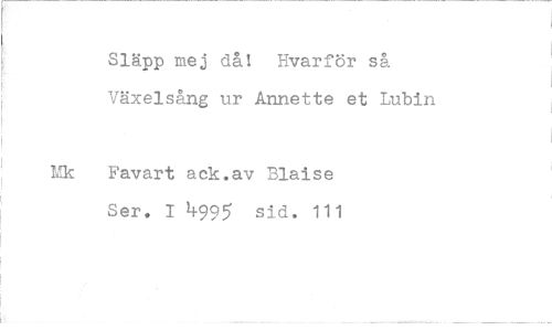 //// Släpp mej då! Hvarför så Växelsång ur Annette et Lubin //// Favart ack.av Blaise Ser. I 4995 sid. 111