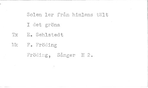 //// Solen ler från himlens tält I det gröna //// E. Sehlstedt //// F, Fröding //// Fröding, Sånger H 2.