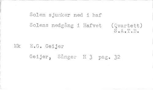 //// Solen sjunker ned i haf Solens nedgång i Hafvet //// E.G, Geijer //// Geijer, Sånger H 3 pag //// (Qvartett) //// S.A.T.B. //// 32
