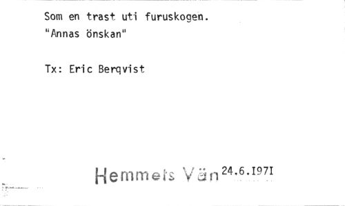 //// Som en trast uti furuskogen. "Annas önskan" //// Tx: Eric Berqvist //// Vän