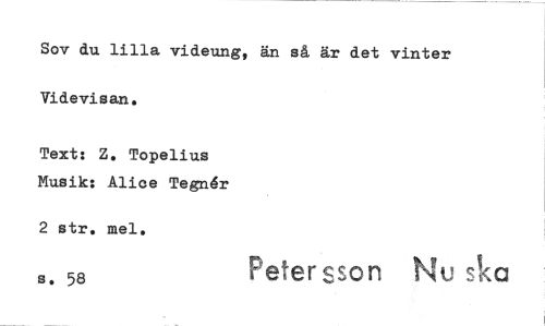 //// Sov du lilla videung, än så är det vinter Videvisan. //// Text: Z. Topelius Musik: Alice Tegnér //// 2 str. mel. //// s sa Petersson Nu
