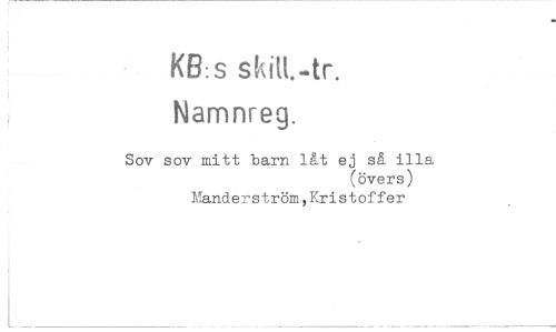 //// KB:S skiM.-tr. Namnreg. //// Sov sov mitt barn låt ej så illa //// (övers) //// Manderström,Kristoffer