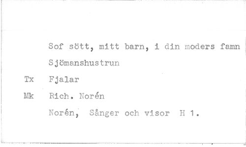//// Sof sött, mitt barn, i din moders famn S j ömanshustrun Tx Fjalar Mk Rich, Norén //// Norén, Sånger och visor H 1.