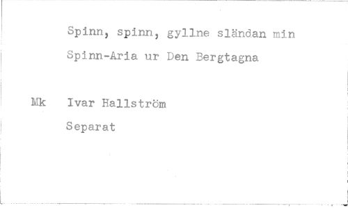 //// Spinn, spinn, gyllne sländan min Spinn-Aria ur Den Bergtagna //// Ivar Hallström Separat