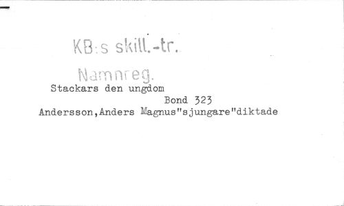 //// KB.s //// M am ar eg. //// Stackars den ungdom //// Bond 323 //// Andersson,Anders Magnus"sjungare"diktade