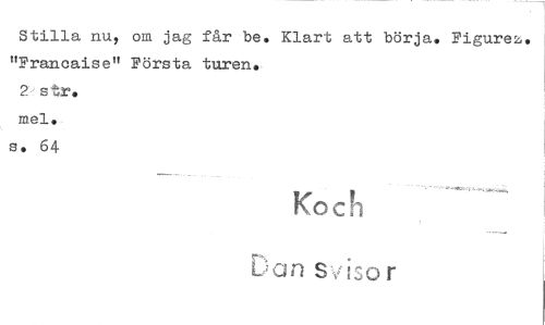 //// Stilla nu, om jag får be. Klart att börja. Figurea< "Francaise" Första turen. //// 2 str. mel. s. 64 //// Koch //// Dan Svisor