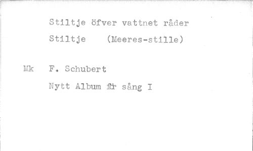 //// Stiltje öfver vattnet råder Stiltje (Meeres-stille) //// F, Schubert //// Nytt Album Rr sång I