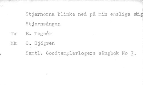 //// Stjernorna blinka ned på min ensliga stig St jemsången E, Tegnér C. Sjögren //// Samtl. Goodtemplarlogers sångbok No 3-