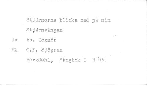 //// Stjärnorna blinka ned på min Stjärnsången Tx Es, Tegnér Mk C.F, Sjögren //// Bergdahl, Sångbok I H 4^.