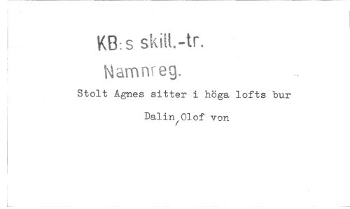 //// KB:S sMt.-tr. Mamnreg. //// Stolt Agnes sitter i höga lofts bur Dalin^Olof von