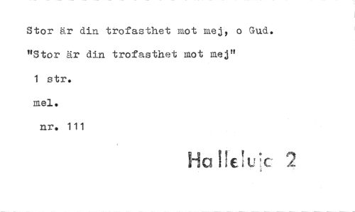 //// Stor är din trofasthet mot mej, o Sud. "Stor är din trofasthet mot mej" //// 1 str. mel. nr. 111 //// se !! ! * //// naHeiu^ 2