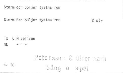 //// Storm och böljor tystna ren Storm öch böljor tystna ren //// Tx C M Bellman //// 2 str //// n