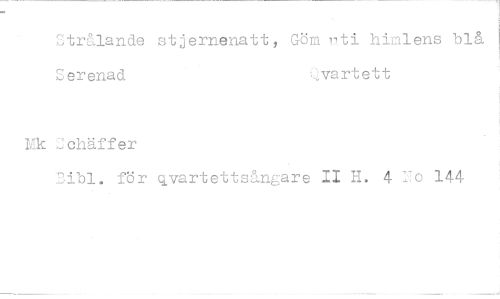 //// Strålande stjernenatt, Göm uti himlens blå j Serenad Qvartett //// Schäffer //// Sibl. för qvartettsångare II H. 4 -o 144
