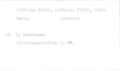 //// Strömmen fritt, strömsen fritt, Vemod. kvartett //// H. Earschner Studentq,vartetten No 18. //// tårar
