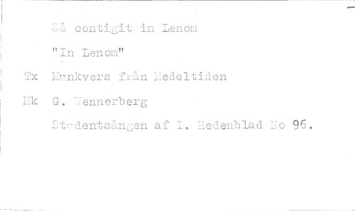 //// Så contigit in Lenom "In Len om" //// Unnkvers från Liedeltiden G. 11'ennerberg //// Studentsången af I. Hedenblad Ho 96.