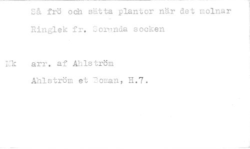 //// Så frö och sätta plantor när det molnar Ringlek fr. Sownda socken //// Lik arr. af Ahlström //// Ahlström et Boman, H.7.