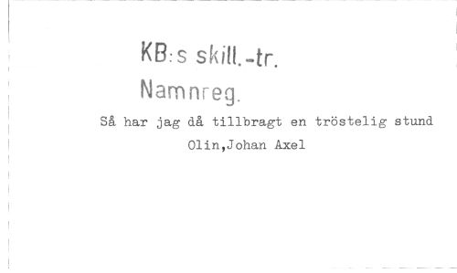 //// KB:s skitl.-tr. Namnreg. //// Så har jag då tillbragt en tröstelig stund Olin,Johan Axel