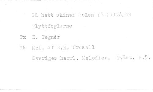 //// Så hett skiner solen på 1'ilvågen Flyttfoglarne Tx 3. Tegnér Hk Uel. af 2.11. Crusell //// Sveriges herrl. Melodier. Tvåst. H.5.