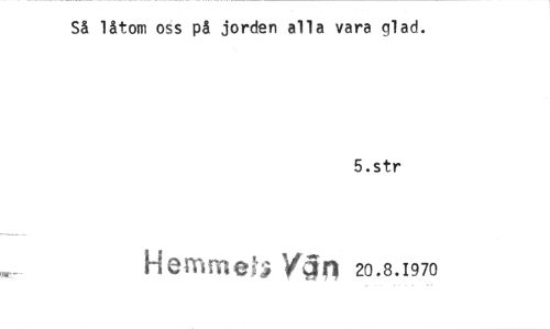 //// Så låtom oss p§ jorden alla vara glad. //// 5.str //// Hemmet Vgn 20.8.1970
